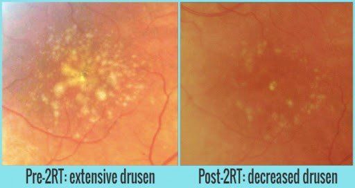 Il laser 2RT a nanosecondi è attualmente l’unico trattamento disponibile per la degenerazione maculare senile (AMD) nella sua variante secca, per gli stadi intermedi e avanzati. Il trattamento 2RT è impropriamente definito “ringiovanimento retinico”, in quanto ha lo scopo di indurre un riassorbimento delle drusen. Le drusen sono le lesioni caratteristiche nella AMD e sono accumuli di materiale di scarto sotto l’Epitelio Pigmentato Retinico, che è lo strato deputato al riassorbimento.